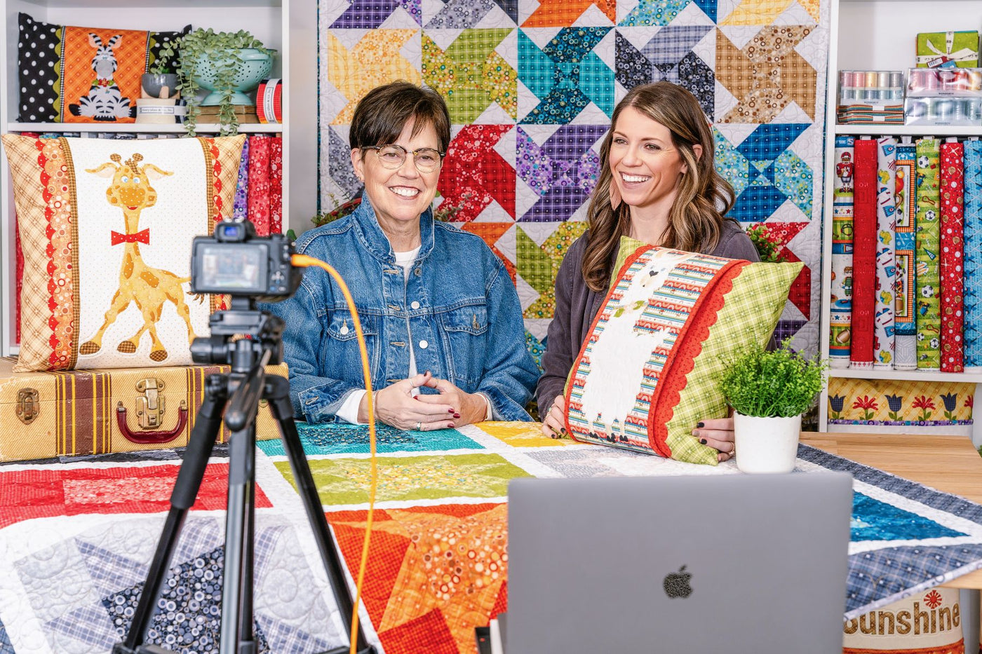 We’re a mother-daughter team who combine our creative talents to design joyful, heartfelt products for people who love to sew and create. Leanne brings her whimsical, hand-drawn characters to life, and Kaytlyn transforms them into polished digital designs. We like to say we make a pretty great team.