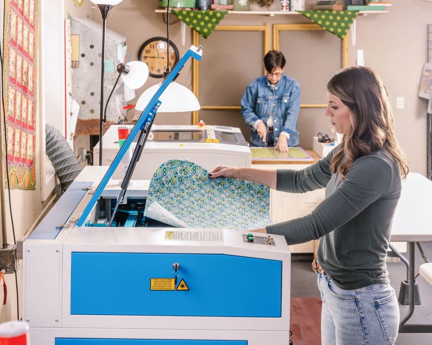We design fabric collections for Henry Glass Fabrics and create coordinating patterns and kits that help tell a complete creative story. We’re also one of the leading manufacturers of laser precut, prefused appliqués, all designed and produced right in our shop in Nashua, Iowa.